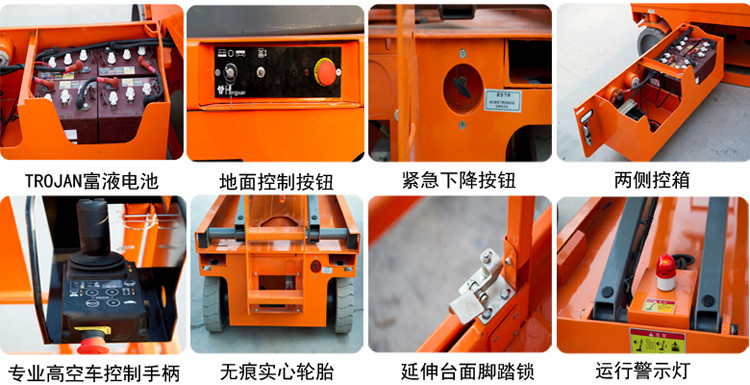 全自行式升降平臺(tái)工作平臺(tái)可移出,擴(kuò)大了工作范圍,可滿足部分用戶的特殊需要。
