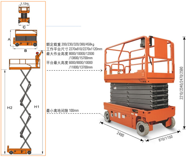 全自行式升降平臺(tái)具備超載保護(hù)功能,對(duì)于不熟悉此設(shè)備的人員具有強(qiáng)制保護(hù)作用。