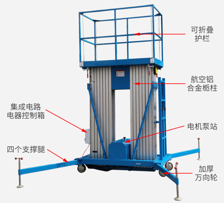雙桅柱鋁合金升降平臺適合1-2人登高作業(yè);