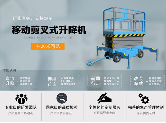 主要用于載人高空作業(yè)的檢修、維護(hù)、更換物件、保養(yǎng)、清潔、布景等