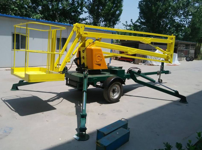 拖車折臂式升降機(jī):可以掛在汽車上,與汽車同步,適合野外高空作業(yè)。
