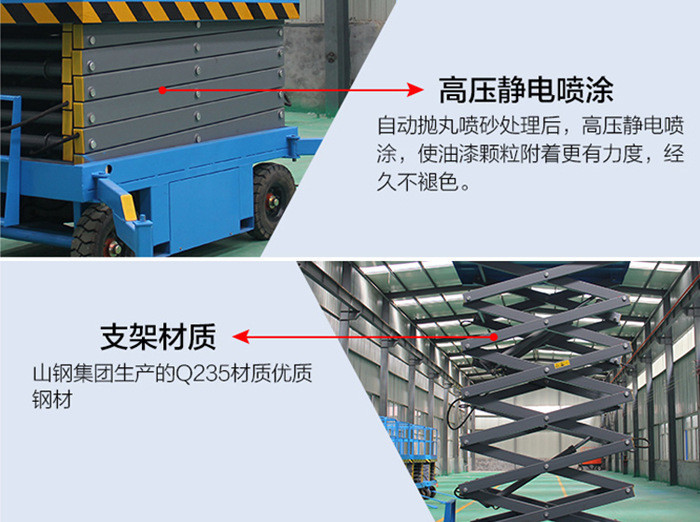 移動升降機根據需求可選為二相、三相、電瓶、柴油機為升降動力,特殊場所也可選用防爆電機,電器等。該升降機控制方式為電動上、下控制升降,手、電兩用或遙控器控制,在停電時仍可使用。該系列升降機具有移動靈活,升降平穩(wěn),載重量大,操作方便等特點,移動升降機廣泛用于工廠、糧庫、機場、加油站、機關、碼頭、野外電力、路燈維護及建筑裝修等各種行業(yè)。移動升降機可根據用戶使用要求設計制造。